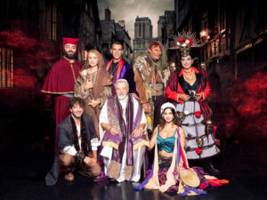 η οποία σαγηνεύει με την ομορφιά της, συγκινεί με την αγνότητα της ψυχής της και έχει πάντα δίπλα της την αγαπημένη της κατσίκα και ο σκοτεινός αρχιδιάκονος Φρόλο που ορμώμενος από το πάθος του για την Εσμεράλδα απομακρύνεται από τον δρόμο του Θεού και γίνεται επικίνδυνος. Μαζί τους, οι κατατρεγμένοι τσιγγάνοι του Παρισιού με την αρχηγό τους, ο ρομαντικός ποιητής και φιλόσοφος Γκρεγκουάρ, ο λοχαγός Φοίβος με τη φρουρά, ο καλός ιερέας της εκκλησίας, μία τραγική και μυστηριώδης γυναίκα και φυσικά οι πολίτες του Παρισιού. Όλοι τους ζουν σε έναν σκληρό, αλλά ταυτόχρονα βαθιά ρομαντικό κόσμο, όπου η αδικία και η προδοσία στέκονται απέναντι στη δικαιοσύνη και την ηθική. Σε μία τιμωρό κοινωνία που δεν αποδέχεται το διαφορετικό, η αγάπη γίνεται το ισχυρότερο καταφύγιο αποτελώντας πηγή έμπνευσης και ελπίδας.